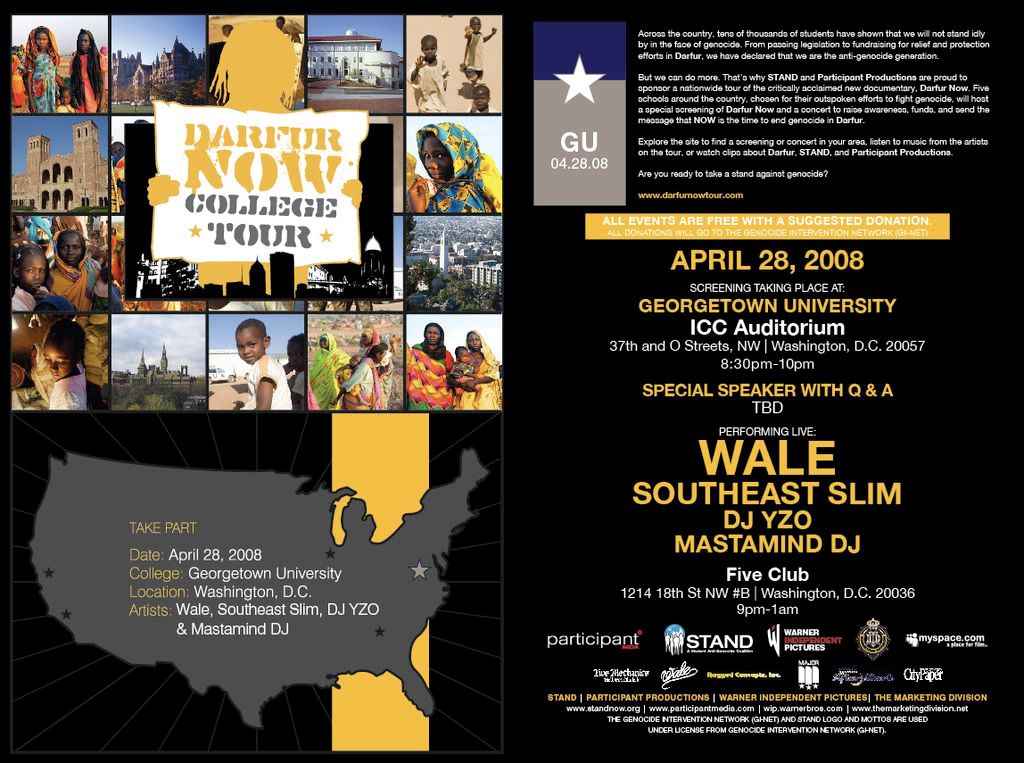 Tonight Darfur Now College Tour with afterparty at Club FIVE